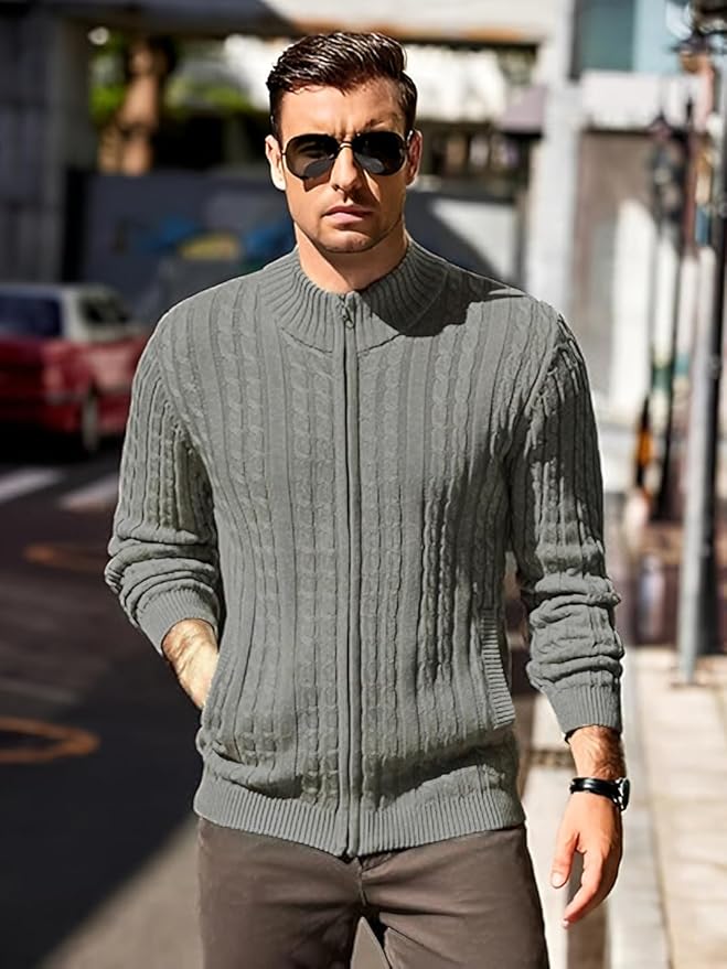 Description: This Tysort men’s high-neck sweater comes with a full zipper design for a snug winter fit. Made from cotton knit, it ensures warmth while allowing breathability. The cable-knitted pattern adds a stylish edge to the design. Its high neck gives extra protection against cold winds. Perfect for layering over shirts or T-shirts for casual or semi-formal looks. The fabric feels soft against the skin, making it ideal for long wear. Lightweight yet warm, it is suitable for both daily use and outings. Easy to pair with jeans or chinos for a trendy winter style. A practical and stylish choice for men’s winter fashion.