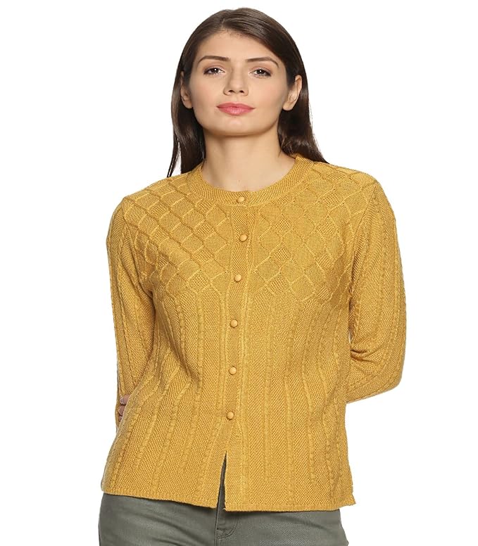Description: This women’s acrylic woollen cardigan features a solid design with a round neck and buttoned closure. Its simple yet stylish look makes it suitable for both casual and semi-formal occasions. The soft acrylic blend ensures warmth and comfort for long hours. Designed with full sleeves, it keeps you cosy even on the coldest days. Its solid colour makes it easy to match with multiple outfits. The lightweight knit makes it ideal for layering without bulk. It offers a balance of style, comfort, and functionality. A practical piece for everyday winter fashion. Affordable and chic, this cardigan is a wardrobe must-have.