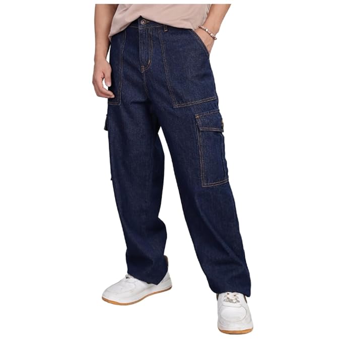 Description: The Urbano Fashion Men’s Baggy Cargo Jeans in Navy Blue combine streetwear style with everyday comfort. Made from sturdy, non-stretchable denim, these jeans feature a loose, baggy fit that gives you a relaxed and trendy look. With multiple utility pockets, they add a functional edge, perfect for carrying essentials while staying stylish. The navy wash enhances versatility, making them easy to pair with t-shirts, hoodies, or casual shirts. Durable stitching ensures long-lasting wear without compromising on comfort. Priced affordably, these cargo jeans are a must-have for men who love fashion with a practical twist.