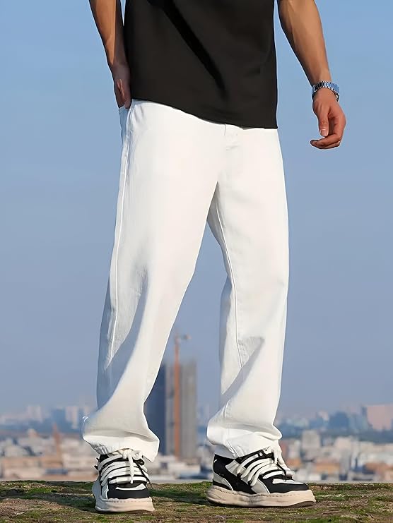 Description: The Ben Martin Men’s Loose Baggy Jeans in White are designed for those who want to stand out with a bold yet minimal style. Crafted from durable denim, these jeans feature a relaxed, loose fit that ensures comfort and easy movement throughout the day. The clean white shade adds a fresh, modern touch, making them perfect for creating trendy, casual, or semi-casual looks. Strong stitching and quality fabric make them reliable for everyday wear without losing shape. Pair them effortlessly with colourful t-shirts, printed shirts, or oversized hoodies for versatile styling. Affordable and stylish, these jeans are a smart pick for men who love experimenting with fashion.