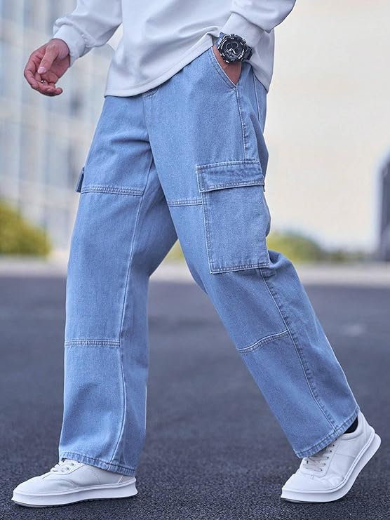 Description: The KARGEENS Men’s Baggy Loose Fit Cargo Jeans Pant Denim offers a stylish and comfortable addition to any wardrobe. Crafted from high-quality denim, these jeans provide a relaxed fit that ensures ease of movement throughout the day. The light blue wash adds a timeless appeal, making them versatile for a variety of occasions. Designed with multiple pockets, they offer practicality without compromising on style. Whether paired with a casual tee or a smart shirt, these cargo jeans seamlessly blend functionality with fashion. Ideal for those seeking a balance between comfort and contemporary design.