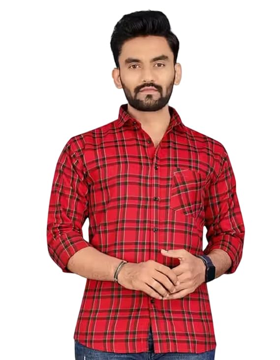 Buy here: Favnic Men’s Cotton Casual Long Sleeves Checks Shirts for Men