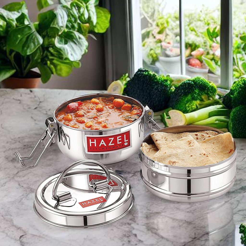 Description: The HAZEL Steel Tiffin Box is a durable and practical option for storing and carrying meals. Made from high-quality stainless steel, it is rust-resistant and long-lasting. Its airtight lid prevents leaks, keeping your food fresh and secure throughout the day. Lightweight and easy to clean, it is perfect for office, school, or travel use. The compact design makes it easy to carry in bags or backpacks. Ideal for rice, curries, sandwiches, or snacks, the HAZEL Steel Tiffin Box ensures your meals stay organised and enjoyable, making it a reliable choice for daily use.