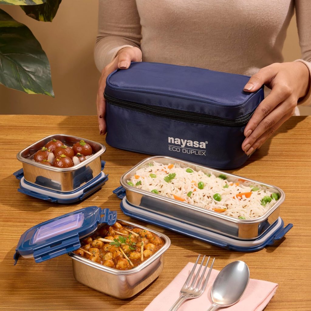 17. Nayasa Eco Duplex 3 Stainless Steel Lunch Box Set