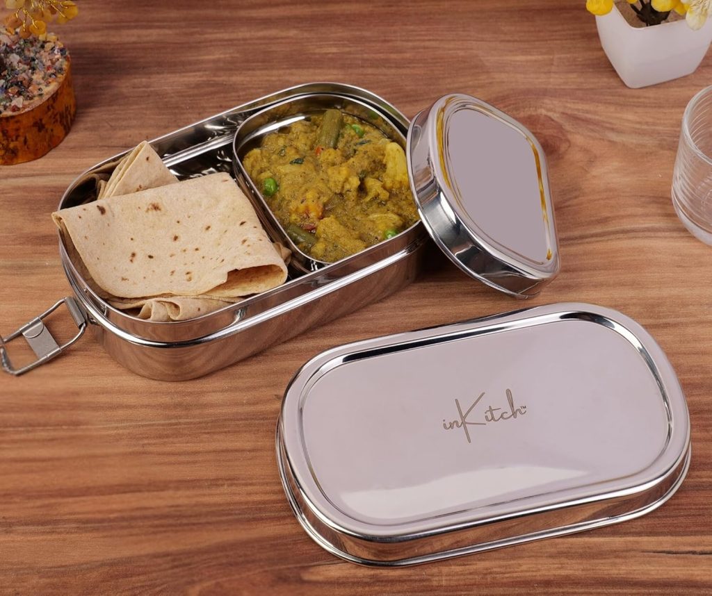 Description: The inKitch Stainless Steel Tiffin Box is a practical and stylish solution for carrying meals on the go. Made from durable stainless steel, it is rust-resistant, easy to clean and built for long-term use. Its airtight lid ensures no leakage, keeping food fresh and secure during travel. Lightweight and portable, this lunch box is perfect for the office, school, or outdoor use. With ample storage space, it can accommodate a variety of meals, including main courses, snacks, or salads. The inKitch Stainless Steel Tiffin Box offers convenience, durability and practicality for everyday meal storage.