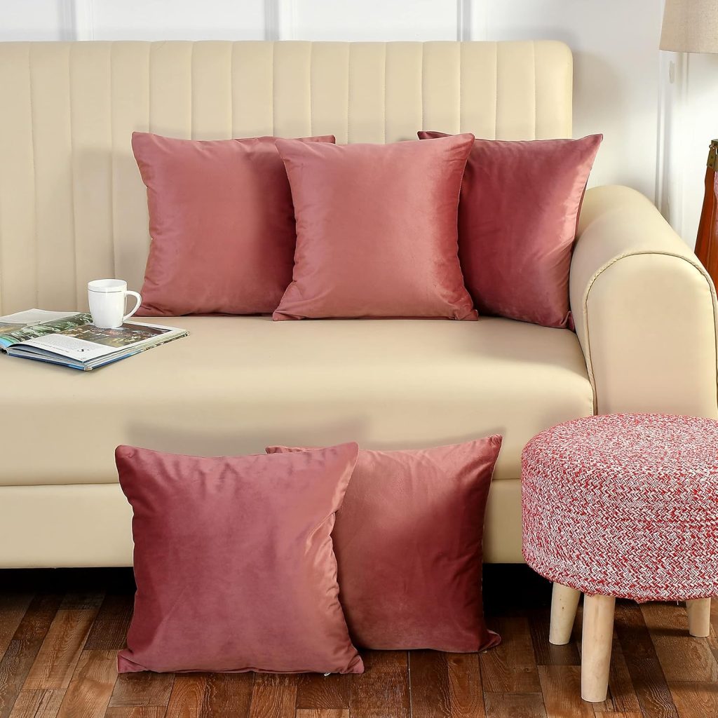 6. Stuffique Velvet Throw Pillow Cover 250 TC Solid Plain Cushion Covers Set of 5 for Sofa