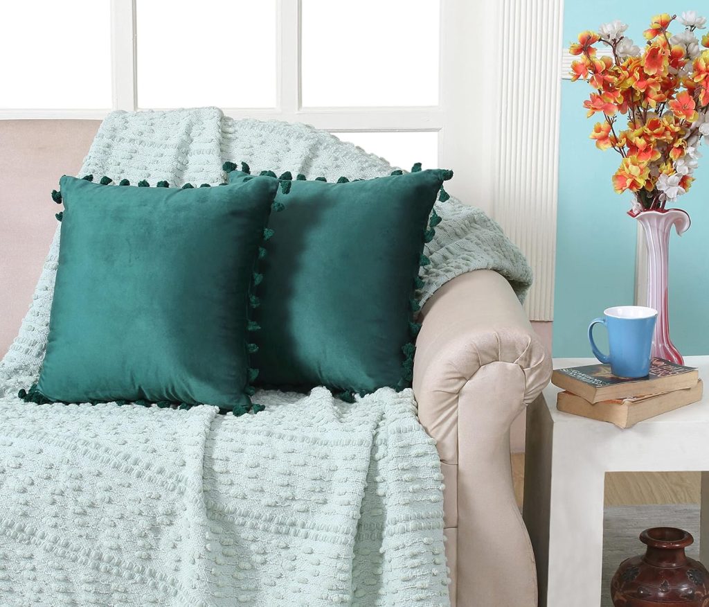20. Umi Deep Teal 16×16 Inch 2 Pc Decorative Velvet Tassel Fringe Design Throw Sofa Pillow Cover