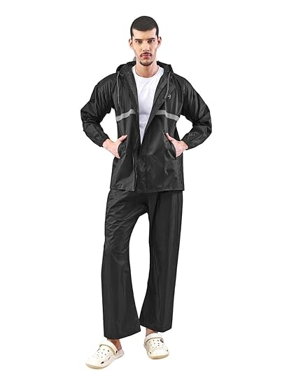 Description: A waterproof raincoat set designed with seam-sealed technology. Comes with an in-built adjustable hood for better rain protection. Includes waterproof pants and a carry pouch for easy storage. Lightweight yet durable, suitable for daily commuters and outdoor use. The rubberised material ensures strong water resistance. A reliable choice for men who need complete rain protection.