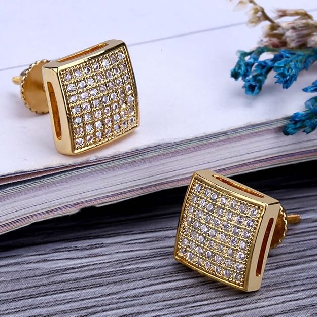 Buy here: 14K Gold Plated 925 Sterling Silver Iced Hypoallergenic Stud Earrings for Men and Women.