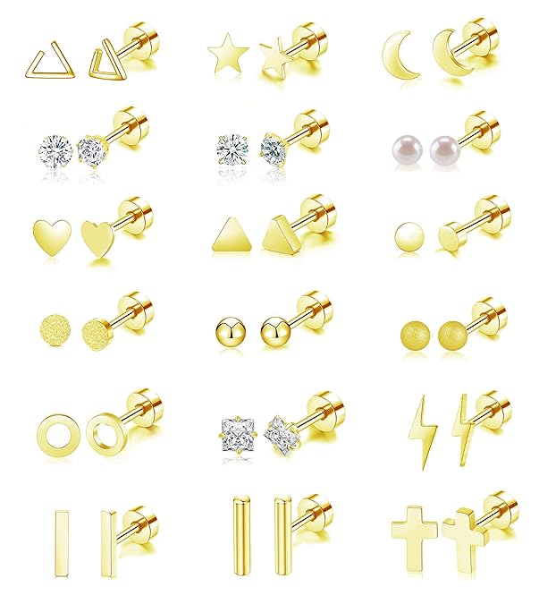 Buy here: 18 Pairs Tiny Cartilage Stud Earrings for Women & Men