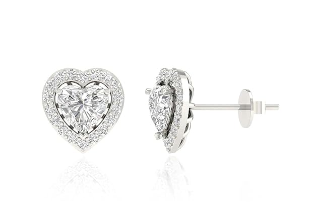 Buy here: ORIONZ CZ Heart Halo Solitaire Studs Earrings for Women & Girls