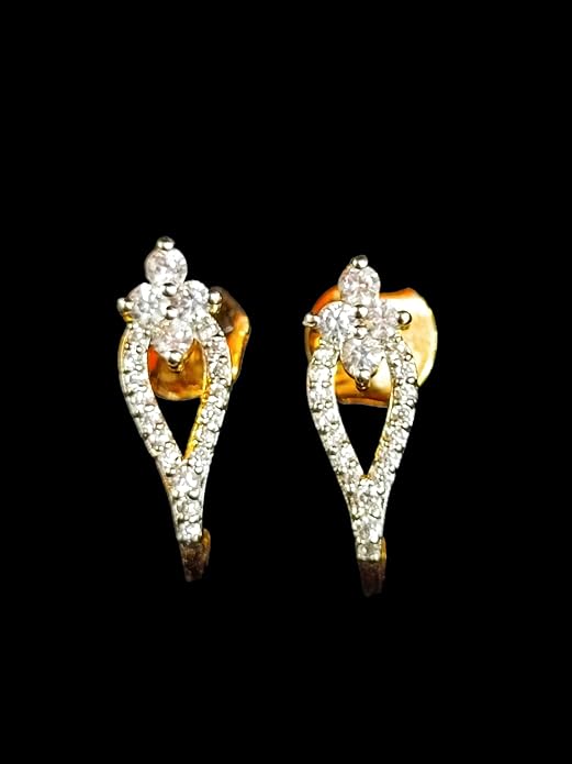 Description: Get the luxurious look of real gold and diamonds without the high price tag with these stunning stud earrings from Tishya Jewellers. These studs are crafted with a vibrant gold-plated finish and feature brilliant cubic zirconia stones that catch the light beautifully. The classic design and affordable elegance make them a perfect accessory for adding glamour to any outfit. They are lightweight and comfortable, making them a great option for daily wear or for adding a sparkle to your evening look.
