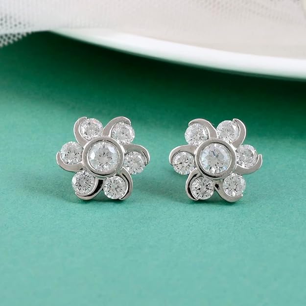 Buy here: VOYLLA 925 Sterling Silver American Diamond CZ Floral Stud Earrings for Women