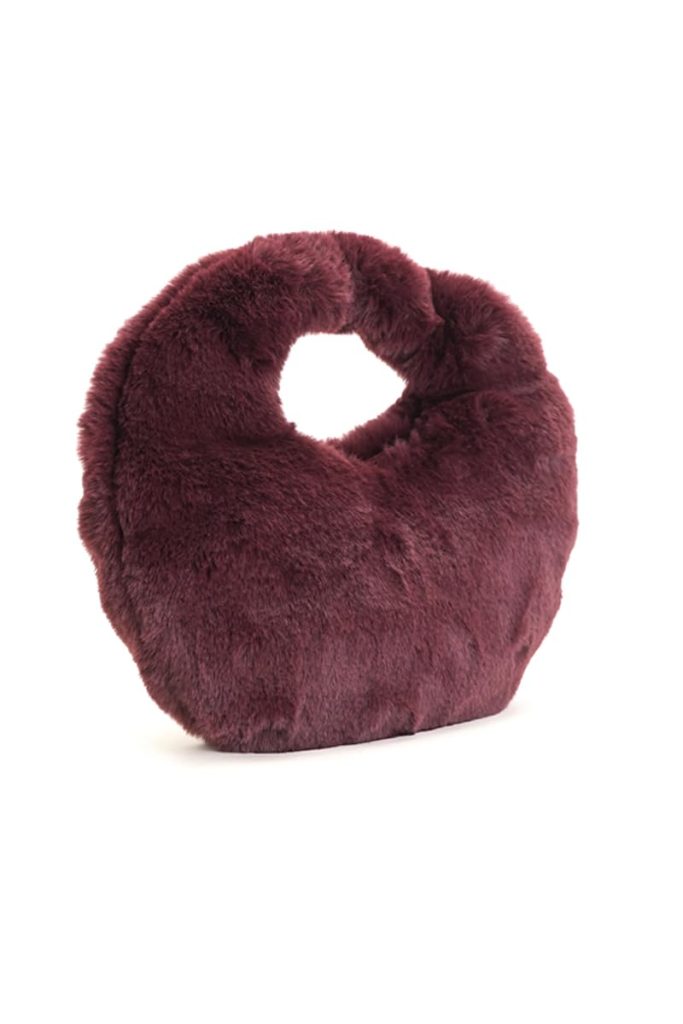 Description: A unique faux fur handbag in a deep plum shade, perfect for winter fashion. Designed with a circular shape that makes it stand out in your collection. Soft, cosy, and stylish for both office and college use. Compact yet spacious enough to carry essentials with ease. Its boho-chic vibe adds flair to any winter outfit. A trendy handheld and shoulder bag for the season.