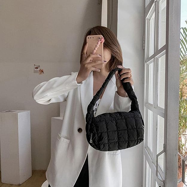 Description: A trendy cotton puffer handbag designed for the winter season. Its soft, cloud-like shape makes it cosy and stylish at the same time. Made with nylon texture, it is lightweight yet durable for daily use. The hidden zipper pocket keeps your belongings safe and secure. Spacious design makes it perfect for outings, work, or vacations. A unique winter shoulder bag that adds charm to your look.