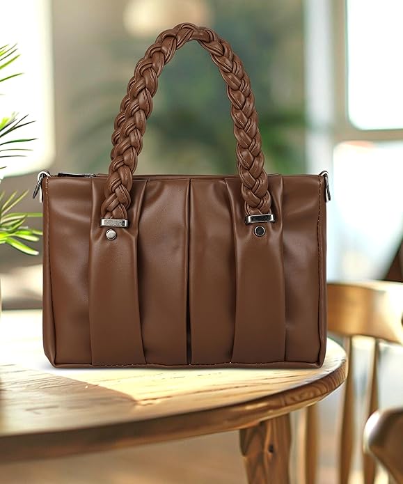 Description: This ABBANA premium brown chic handbag is crafted from quality leather for a luxurious finish. The braided handle design gives it a fashionable twist while maintaining durability. Spacious enough for office, travel, or daily needs, it can carry essentials like documents, makeup, and more. Its versatile look makes it suitable for both formal and casual outfits. The soft leather texture gives it a classy, timeless appeal. Lightweight design ensures comfort without compromising on storage. Strong structure ensures long-lasting use even with daily wear. A chic handbag that blends elegance, durability, and everyday functionality.
