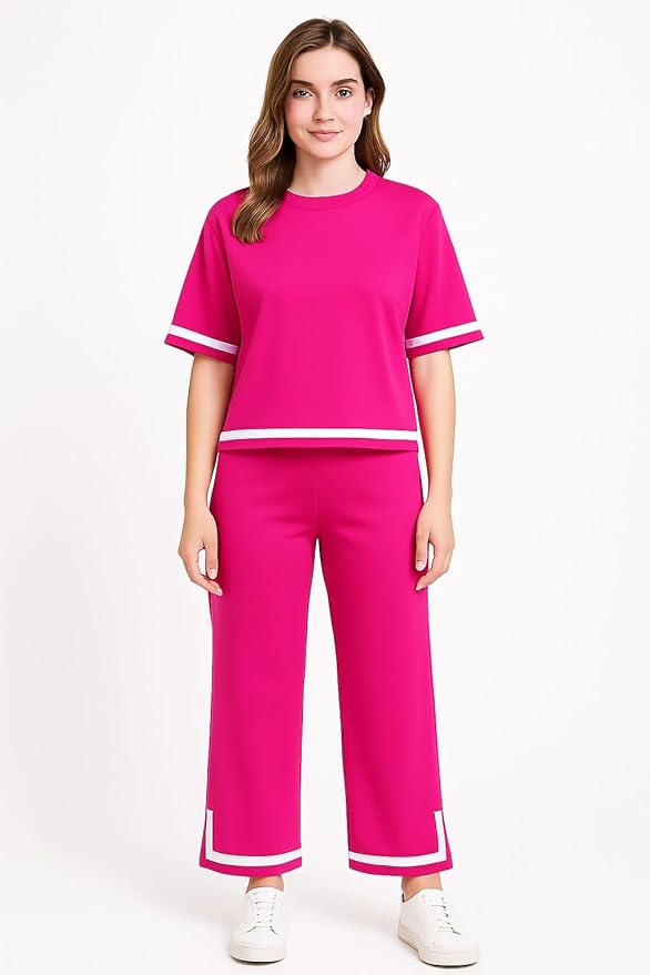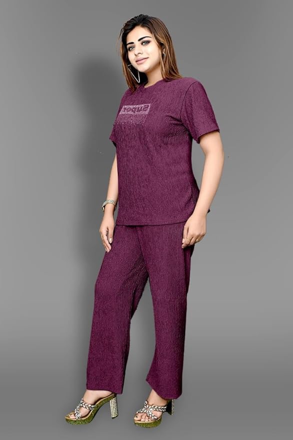 Description: Ameeha Summer Lounge Co-ord Set is a breezy and stylish outfit for women. This two-piece loungewear includes a soft T-shirt and palazzo pants. Designed with lightweight fabric, it is perfect for summer wear. The relaxed fit ensures comfort for daily activities. Breathable design keeps you cool throughout the day. Suitable for casual outings, home lounging, or travel. Easy to pair with sneakers or sandals for a trendy look. Durable and easy to wash for long-lasting use. A fashionable and affordable choice for women who love casual comfort.