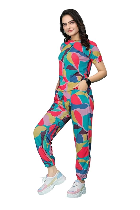 Description: A trendy and comfortable co-ord set made with soft cotton lycra fabric. The vibrant tie-dye print adds a playful touch to your loungewear collection. Comes with a short-sleeve t-shirt and jogger pants that give both style and comfort. Breathable material makes it ideal for long wear at home or casual outings. The elasticated joggers provide ease of movement and a relaxed fit. Perfect for travel, lounging, or even running errands in style. Easy to wash and maintain without losing shape or colour. A budget-friendly fashion choice for women who love trendy yet comfy outfits.