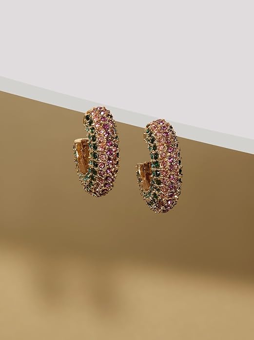 Buy here: Ami Multi-Colour Dazzling Contemporary Semi Hoop Studs Earring For Women
