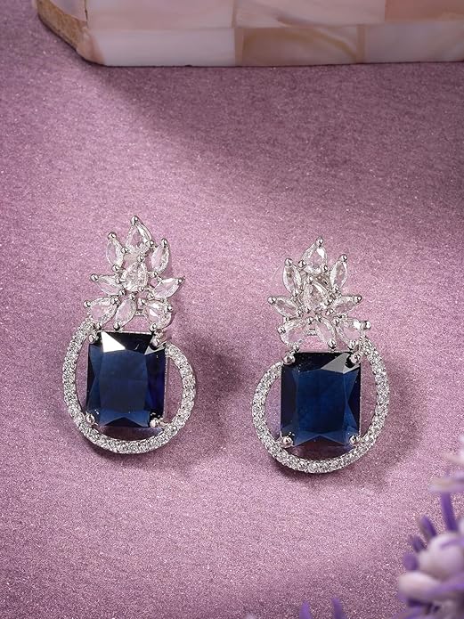 Buy here: MINUTIAE Gold Plated Blue & White Diam Ear Tops Stud Earring Jewellery For Women