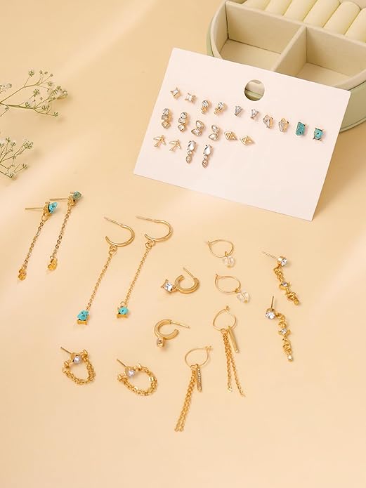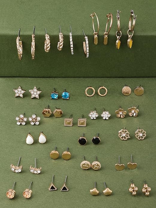 Buy here: Zaveri Pearls Set Of 25 Gold Tone Smart Casual Wear Studs & Hoop Earrings For Women