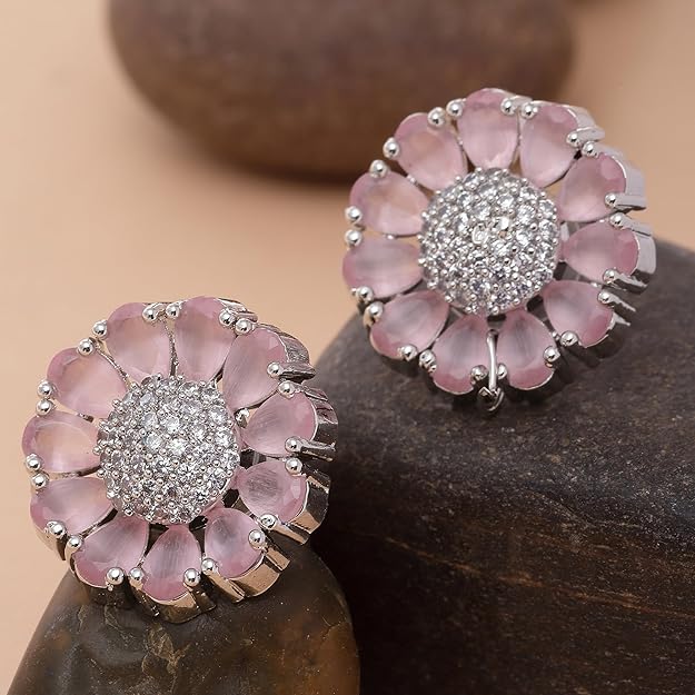 12. ZENEME Rhodium-Plated Handcrafted Stud Earrings For Girls